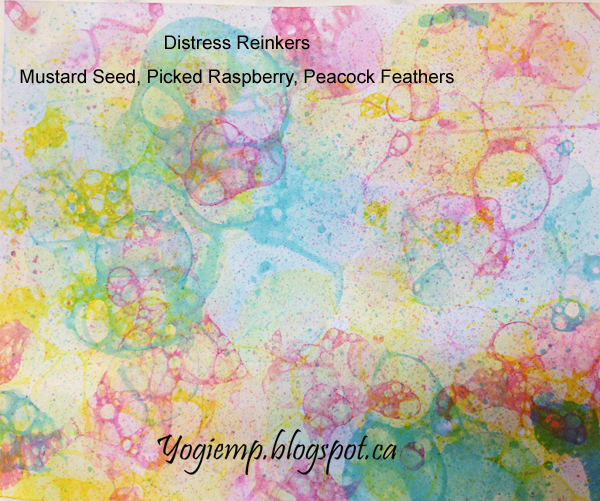 I used Distress Reinkers in 3 different containers - Mustard seed, Picked Raspberry and Peacock Feathers. I really like this combo |