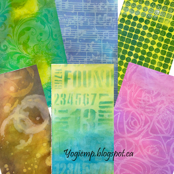 Created: June 11, 2019 These are a collection of the ATC's I made for the fourth week of the challenge. I had a fun play day making backgrounds with Oxide ink pads and stencils. I used Tim's stencil on all the backgrounds except for the star spray which is one of Suzanne's (Quietfire Design stencils). All were done on 110# Staples white cardstock and are 3.5" x 8.5". |
