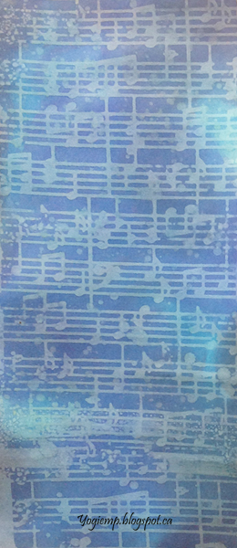 ID: Bkgr'd Oxides - Concerto Sponged Salty Ocean, Blueprint Sketch and Chipped Sapphire. Misted stencil. pressed down, pressed with paper towel and dried.