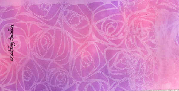 ID: Bkgr'd Oxides - Scribbles Sponge Pcked Taspberry and Wilted Violet. Misted the stencil with water and pressed down on cardstock. Pressed with a paper towel, then dried. |