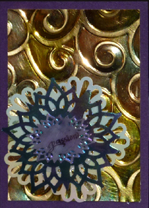 embossed with the Cuttlebug D'Vine Swirls, Dribbled Alcohol inks onto it