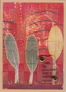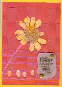 Both weaving techniques were shown to me by a good friend in a recent play day. I really loved it when I was shown it, so have continued with it, both as covers for a journal, a fat book mingle page and now these ATC's. See bottom of page for detailed instructions. |