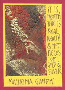 ID: BVCG - Gold Leaf - Gandhi (unavailable) Words: It is health that is real wealth & not pieces of gold or silver. Mahatma Gandhi |
