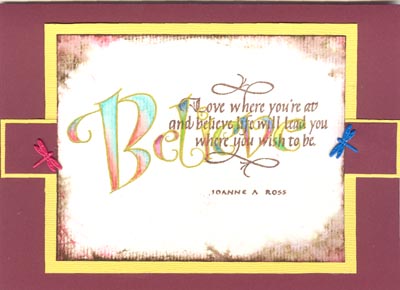 Please click the Home button for the Created By Hand Challenge Gallery 2009 or use your computer's back button for previous images. Thank You to go to my "More" Greeting Card Gallery or to the CBH Challenge Gallery for 2007/2008 please click on the link below.