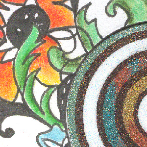 "Circles - Every End" card The theme this week is either Connections or Circles, and you can gather what I chose... I had this image on my computer, I think from Dover Sampler, so I printed it out and traced it onto the front of my white cardstock card, then went over the lines with a thick Micron pen. Cut it down to a circle using my EK Success Orbis Circle Scissors, keeping a slightly flat edge at the bottom so the card would stand. For the center circle, I put a piece of Sookwang tape onto white cardstock. Created a bunch of circles in my Sure Cuts a Lot program, then cut it out with my Cricut without cutting through the cardstock. Removed the release papers and sprinkled and mixed various Ritz Micro Fine Glitter (Bronze for the separating circles, Deep Gold/Copper, Turquoise/Copper, Celedon, then Warm Highlights). |