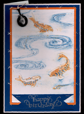 "Water - Koi HB" card This weeks theme is the Water or Silver. Love this embossing folder, but don't get that many opportunities to use it. The sentiment is from Quietfire Design. |