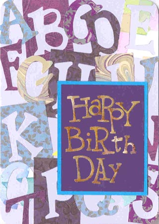 I used both the negative and positive portions of the alphabet punched out letters as well as tilting them for the background which added interest. I rounded the corners ont he card too. I then used a Sizzlets alphabet die for the "Happy Birthday" letters which I adhered to a dark purple cardstock then onto an aqua cardstock before adhering to the main card. |