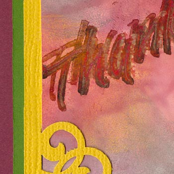 Detail image of upper right hand side. The "Thank you" in this portion of the card, is upside down