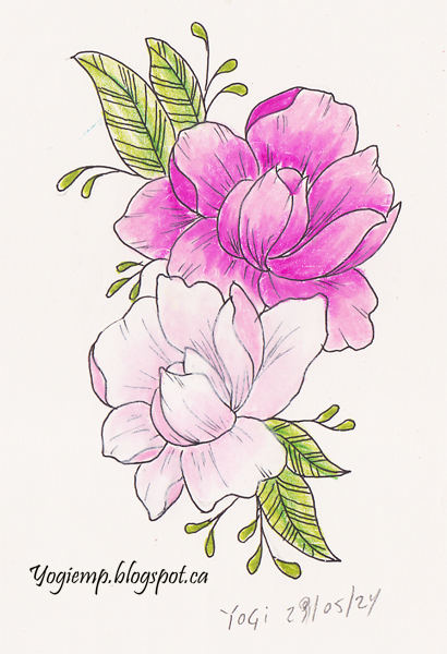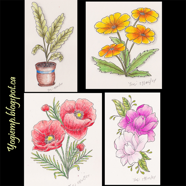 2024 Playing with my Crafty Dozen gals on Wednesday... On Bond Calligraphy paper was in the mood for florals... Juice Up pen, Posca colored pencils, graphite. |
