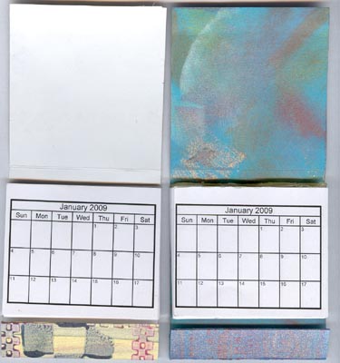 Inside view of a couple of the calendars. Some I left the color of the paper, and some I painted. Each date square is approx 3/8" w x 1/2" h |
