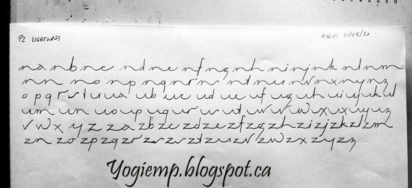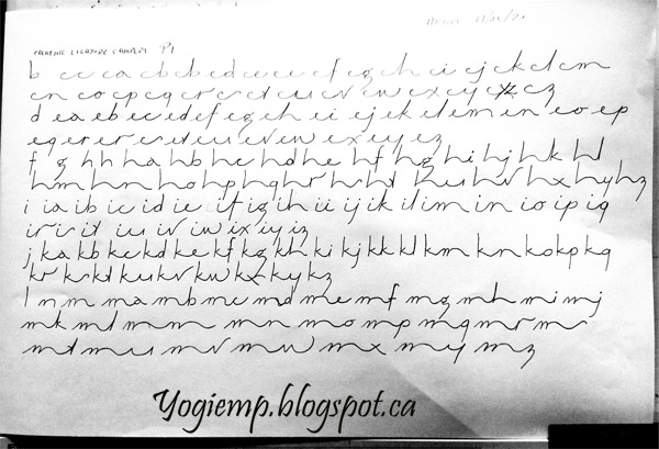 2020 I'm taking an online Zoom class with Julie Wildman "Variations of Akim" 1st day was the basic alphabet and numbers. Our homework was to create ligature variations of all the alphabet - minus few that are not conducive to that...