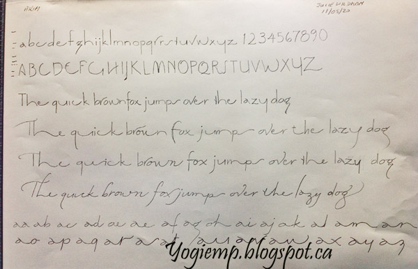 Day 1 - basic letters and practice. Done on Genoa Bond 25% cotton using an HB pencil. |