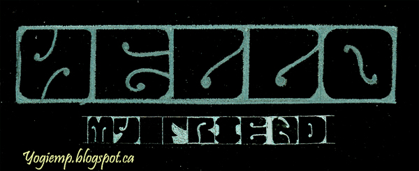 Day 1 size: 6"w x 3.25"h On black Recollections cardstock using a green Black Edition colored pencil and a green metallic Juice Up Pen. "Hello My Friend" |