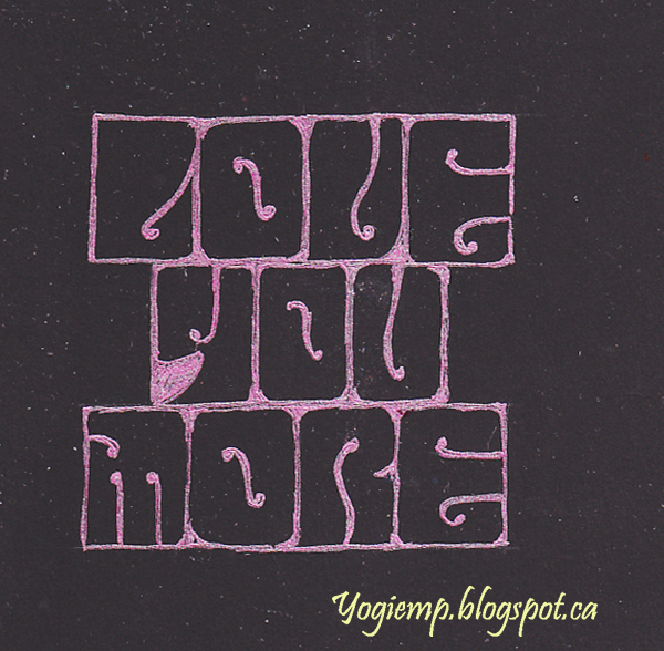 Day 1 size: 3"sq On black Recollections cardstock using a pink Metallic Juice Up pen "Love You More"