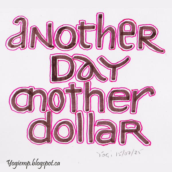size: 4.5"sq I was just doodling playing with my new calligraphy markers and this emerged... On Canson XL Pen &Ink Paper words: Another Day Another Dollar |