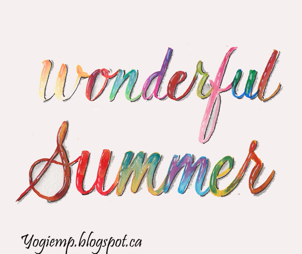 Created: August 6, 2021 I signed up for the Summer Retreat 2021 (mini classes of 100 artists). This was from Day 5, Brush Lettering tutorial Melinda Lerwill On heavy weight Master Craft HP watercolor paper and using QoR watercolors for "Summer" and Kuretake Clean Color brush pens and water for "Wonderful". Added graphite shading with a Caran D'Ache B pencil and paper stump, Micron pen for the accent on the shading. Holbien white gouache and pointed pen for the decorative detail