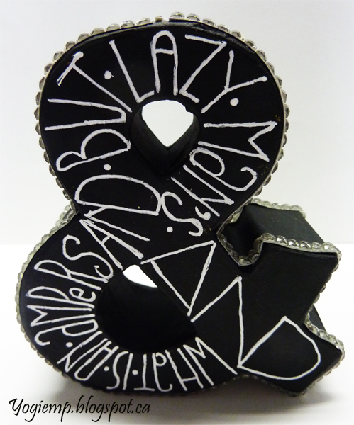 2022 Our Galleria topic for September 2022 is Ampersand. At our recent garage sale these 3D craft papered ampersands were handed out... I painted mine black with some acrylic paint. Wrote in the text with a Uniball white gel pen in monoline style. Added various rhinestone embellishments Words Front: What is an ampersand but lazy man's AND Words Back: Or maybe I ran out of space R.O.F.L. |