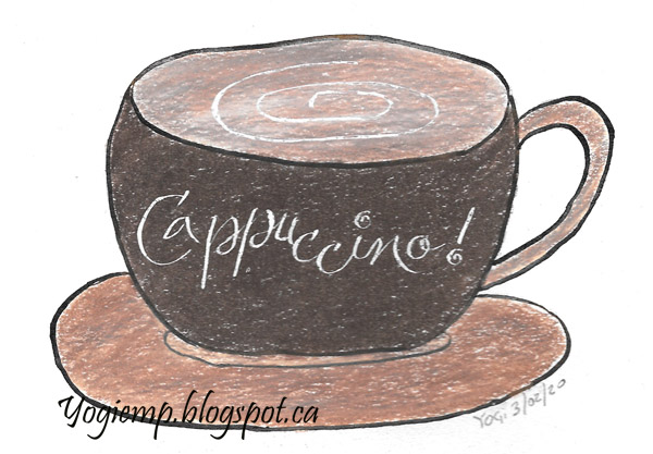 ID: "Cappuccino" I love cappuccinos... so drew a cup using Prisma colored pencils. Wrote in my word in a modern script lettering using a Zebra G nib and Bleed Proof white ink. |