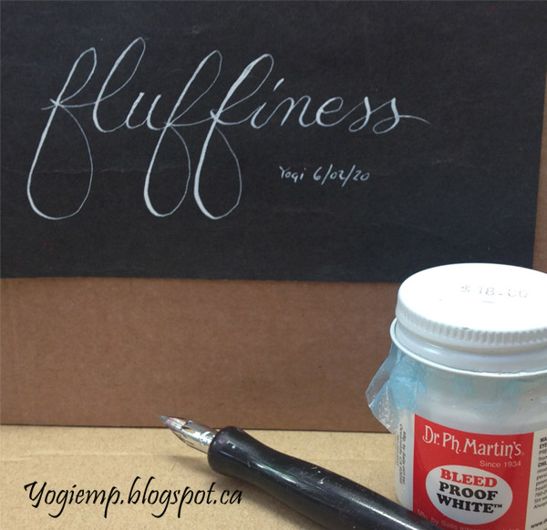 ID: Fluffiness Used a Zebra G nib and Bleed Proof white ink on a misc black paper.