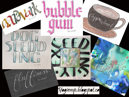 ID: "Aardvark" A funky lettering style using a 6.0 Parallel Pen and various colors of Bister ink on a high quality stationary paper. (Yellow, red, blue & green). When dry, doodled with a white gel pen. |