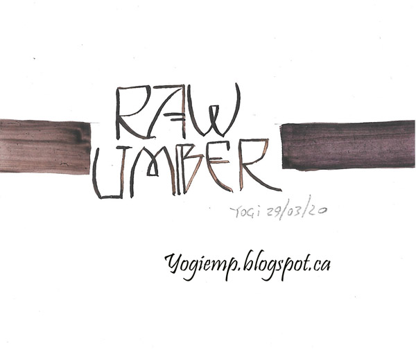 ID: Raw Umber I like Raw Umber as a brown color. Using a Zebra G pointed pen nib wrote out the word using Winsor and Newton watercolors in an "Alan Blackman" style. |