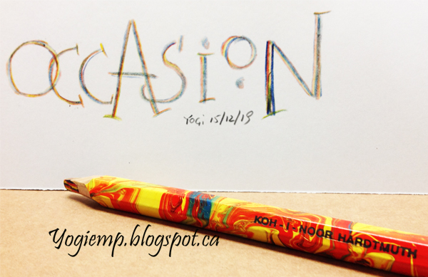 ID: "Occasion" I remember the first time I came across one of these multi colored pencils by Koh-i-Noor... I was so intrigued. Wrote out the word rotating the pencil as I was writing on 110# Staples cardstock. |