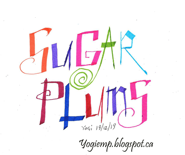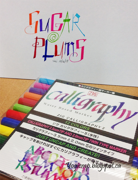 ID: "Sugar Plums" Came across these funky monoline letters as seen on LarksCrafts.com. Another bunch of calligraphy pens I haven't used... Wrote each letter with a different color on 110# Staples cardstock. |