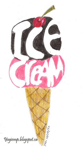 Day 10: (Ice Cream) Staples white 110# cardstock. Prisma colored pencils, created my double stack ice cream cone... Strawberry & chocolate - and added a cherry on top - yum.