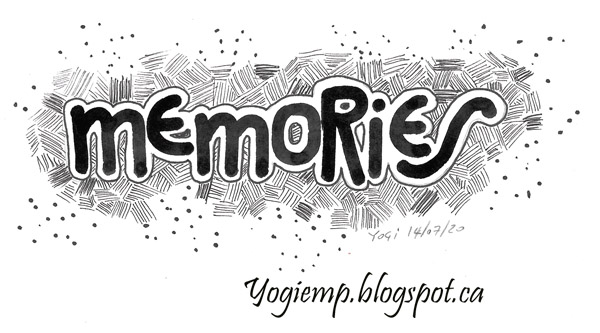 Day 14: (Memories) On white Staples 110# cardstock, using a B-1/2 nib and Sumi ink wrote out my word. Outlined it with a Zig Writer. Doodled around it. I remember doing something this style eons ago... and then someone from one of the Facebook groups I belong to did one and it brought back the memory...