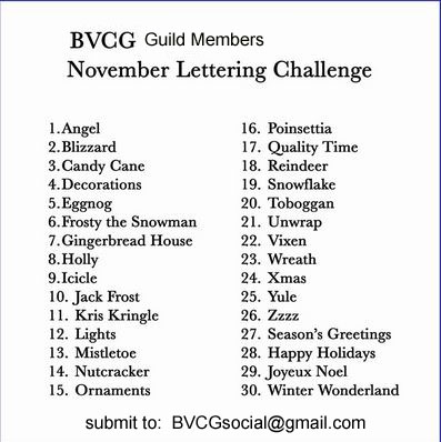 Our Guild put out a challenge for November 2019 to write one word per day in any hand you want - no restrictions... or do them all in one day BIG GRIN and enter them into a draw for a gift certificate from Kensington Art Supply. You know me and challenges... I usually really like them and this one is right up my alley. Also our next Guild's journal has the topic of Black & White, so I decided to do all my words in black & white with touches of grey. I'll probably submit a few from this challenge.
