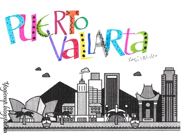 Day 18: Puerto Vallarta Wrote out the city name with various calligraphy pens, added details with a black Zig Writer |