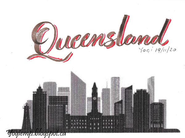 Day19: Queensland With a Kuretake #8 brush pen (refilled with Vemillion Sumi ink in a dirty cartridge giving me a brownish color right now...). Shadowed with a red Color Brush pen.