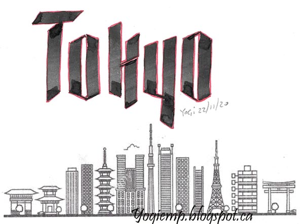 Day 22: Tokyo Using a 6.0 Parallel pen wrote out the name in a funky style. Outline the letters with a red pen. |