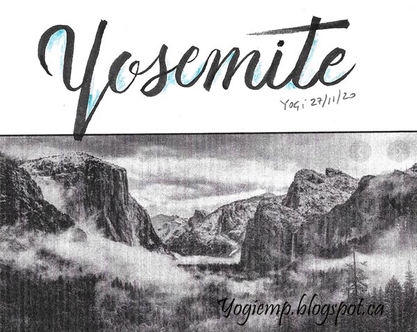 Day 27: Yosemite Used a Kuretake #8 brush pen. added Prisma colored pencil shading.