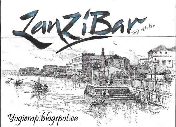 Day 28: Zanzibar Used a Kuretake #8 brush pen and Prisma colored pencil accents.
