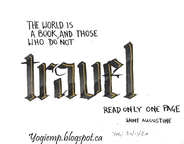 Day 30: Travel 3.8 parallel pen and Sumi ink. Gold gel pen accents.