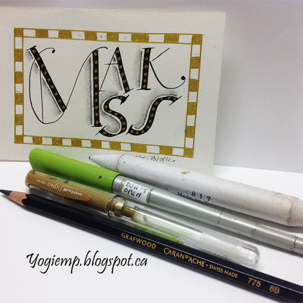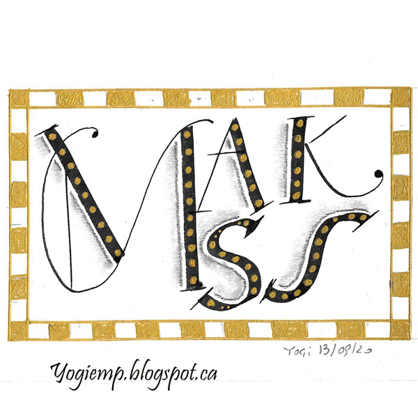 Day 13: (Masks) Bee Super Deluxe paper. 3.8 Parallel pen and Sumi ink. Gold gel pen dots and border details. Graphite and Paper stump shading.