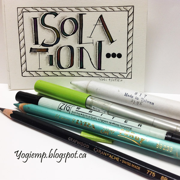 Day 9: (Isolation) Bee Super Deluxe paper. 3.8 Parallel pen and Sumi ink. Colored with Lyra Super Ferby metallic pencils. Doodled border. Graphite and paper stump shading.
