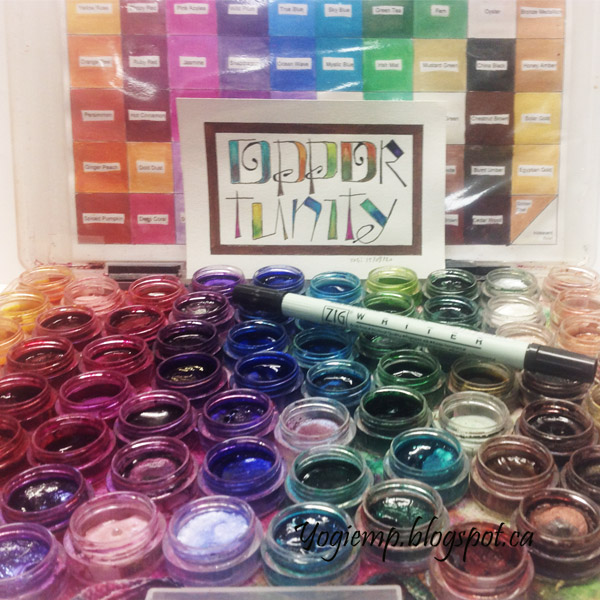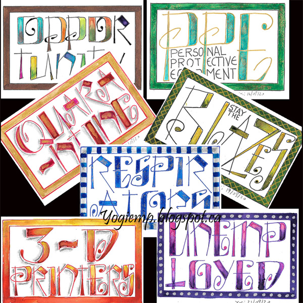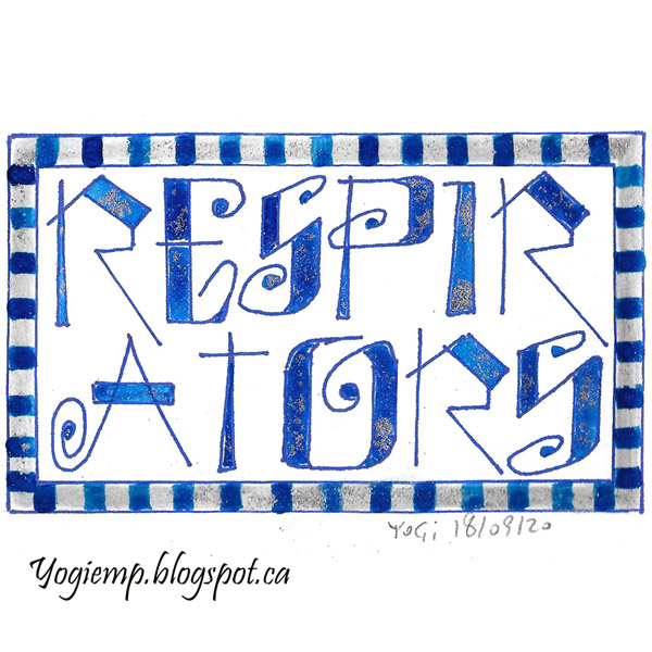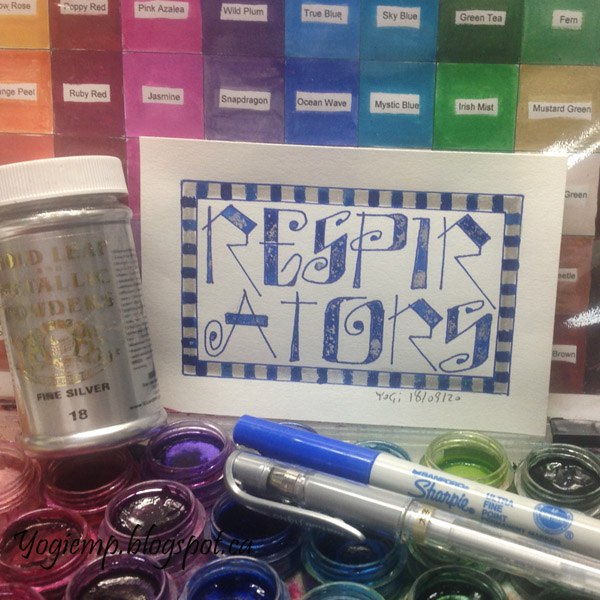 Day 18: (Respirators) Bee Super Deluxe paper. Funky lettering. Blue Sharpie. Silver gel pen. Twinkles H2º sprinkled with Neuberg Ebel Fine Silver powder. |