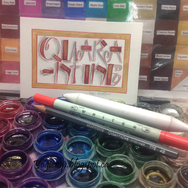 Day 17: (Quratantine) Bee Super Deluxe paper. Funky lettering. Red Zig Writer. Twinkles H2º. Graphite pencil and paper stump. |