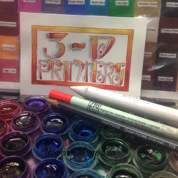 Day 20: (3-D Printer) Bee Super Deluxe paper. Funky lettering. Red Zig Writer. Twinkles H2º. Graphite pencil and Paper stump.
