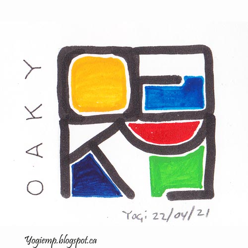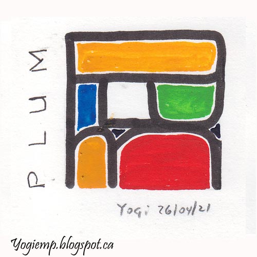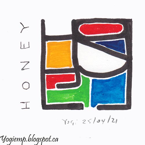 April 17, 2021 And I'm having fun playing with something the students are playing with in Brody's ZOOM class - Chinese Seal Script. Stonehenge paper, Black Zig Writer and watercolors.