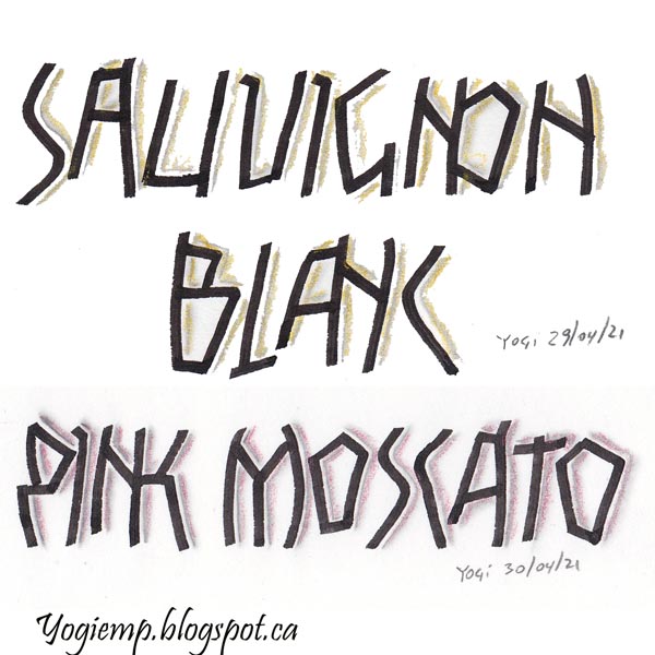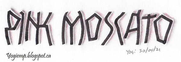 April 17, 2021 I was skimming through the new Speedbal textbook #25 and came across Liesbet Boudens lettering which I've loved, but she never had enough showing for me to get a good grasp of the rest of the alphabet... sigh. But Carl Rohrs did his interpretation - thank you. Stonehenge paper, 2.4 Parallel pen and Sumi ink, Graphite shading with paper stump and lightly accented with colored pencil (yellow for the blanc and pink for the Moscato)