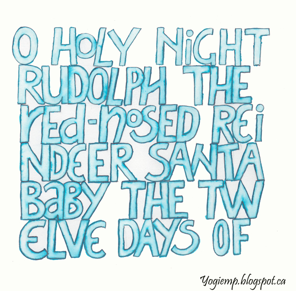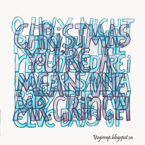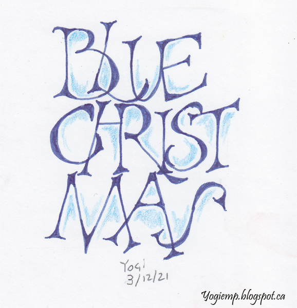 Title: Day 3 - Blue Christmas On Staples 110# white cardstock wrote out the words with a Blue Zig Writer in my own funky Hermann Killian style lettering. Shadowed with Prisma colored pencil. |