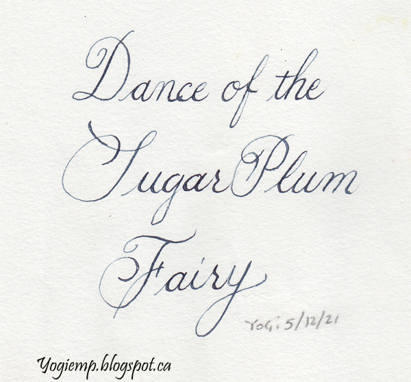 Of The On Arches Text Wove paper using a Nikko G nib and deAtramentis Indian Blue/Gold ink in a copperplate style. |