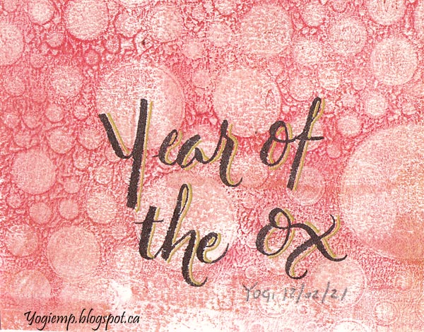 Day 12: Year Of The Ox Geli Print scrap. Paul Antonio's favorite brush pen. Gold gel pen for the shadowing. |