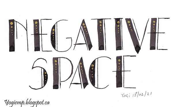 Day 18: Negative Space 6.0 Parallel pen and Sumi ink Geli Print in "Park Lane NF" font by Nick Curtis. Gold gel pen dots. |