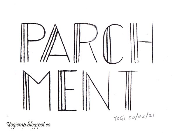 Day 20: Parchment The edges of my 6.0 Parallel penwith Sumi ink in "Hazel Deco Art" font
