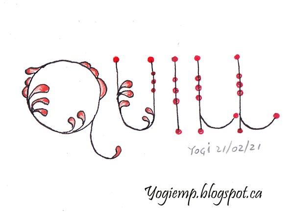 Day 21: Quill Micron pen in Moshik Nadav font with colored pencil shading.
