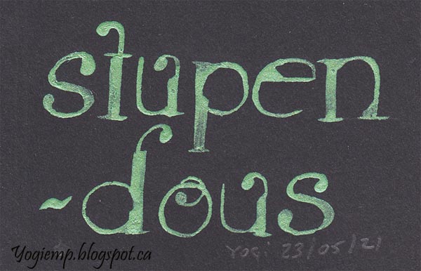 Day 23 - Stupendous Twinkles H2º- Sap Green, 2.4 Parallel pen and pointed nib. |